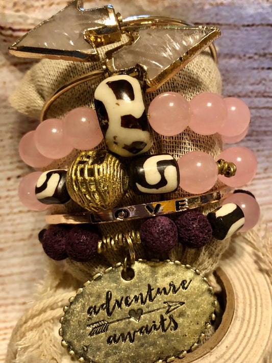 African Brass w/ Stones and Crisp Slate Bangle