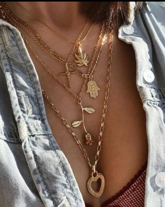 5 Layered Fashion Necklace Gold