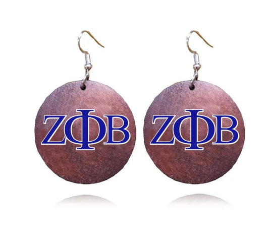 African Greek Letter Sorority Natural CustomWooden Earrings