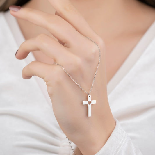 Cross with hollow heart shape, customizable name design, light luxury unique necklace