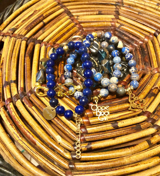 Indigo Cobalt Blue & Sea Sediment Jasper and Gold Stack