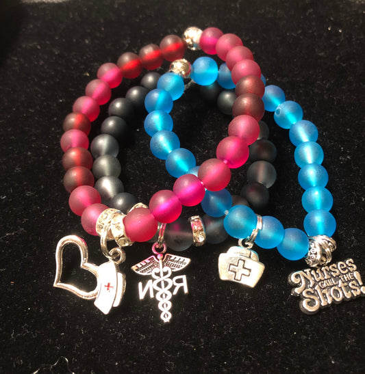 Nurse Powder Purple Frosted Flower Charmed Bracelet