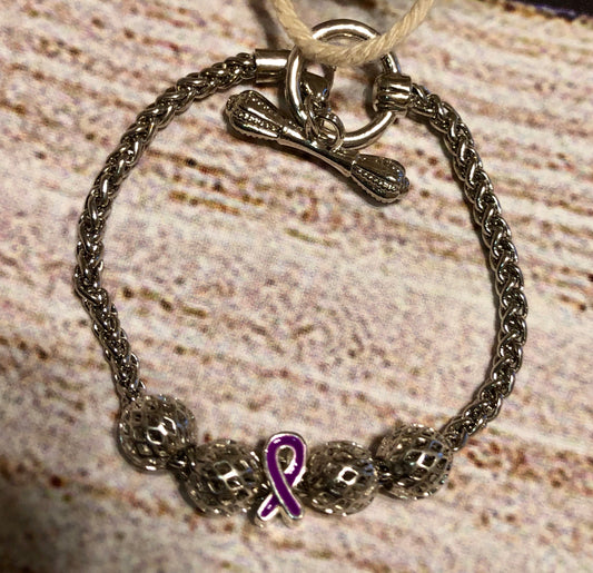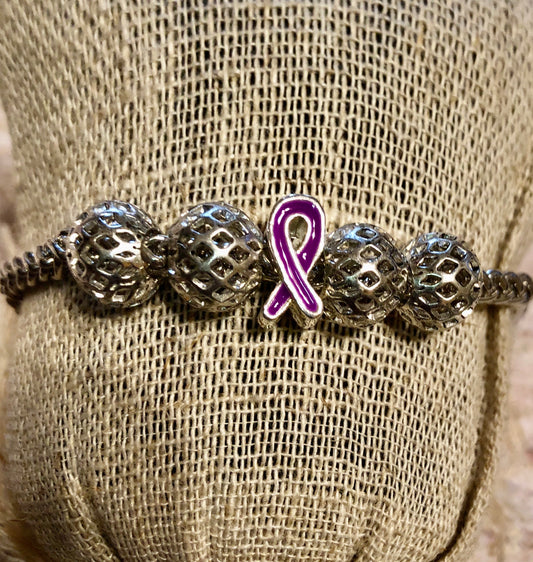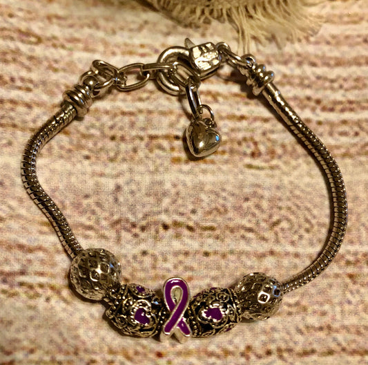 Purple Beaded Charm Awareness Bracelet