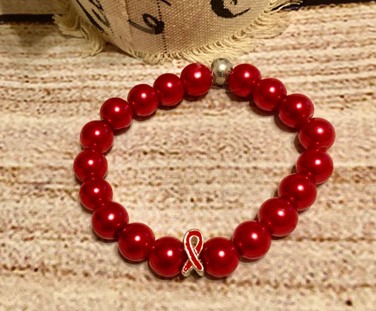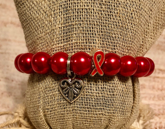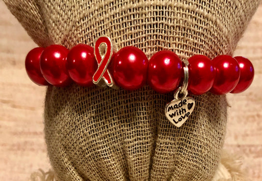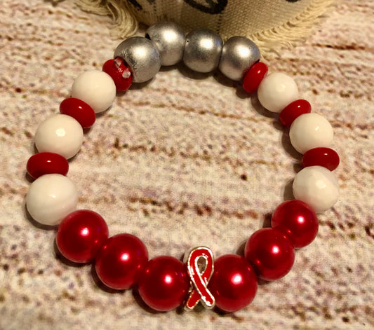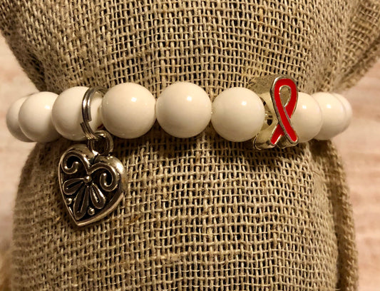Red and White Awareness bracelet Heart