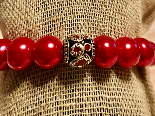 Red Awareness bracelet with white quartz