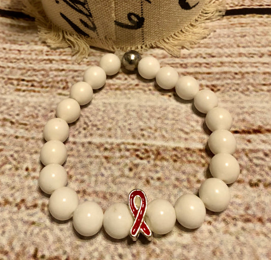 Red Awareness bracelet Heart white Quartzite