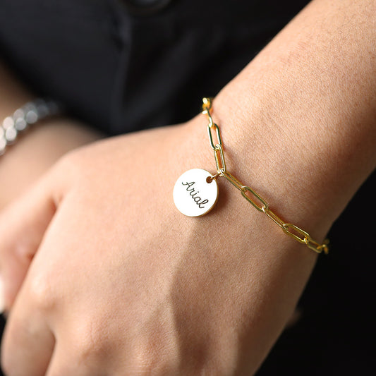 Trendy personality round card can be customized name design simple wind bracelet