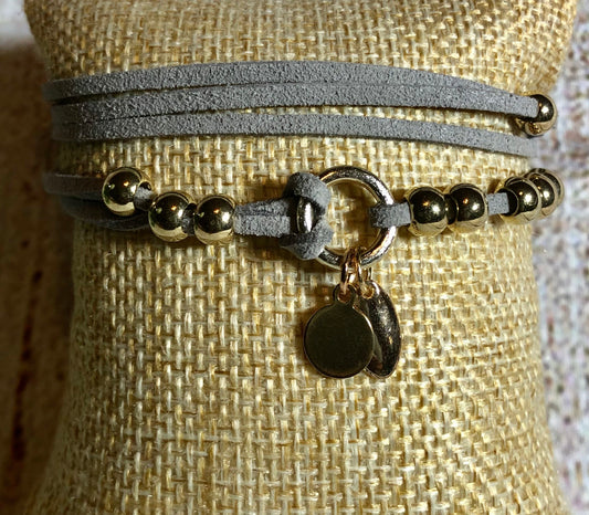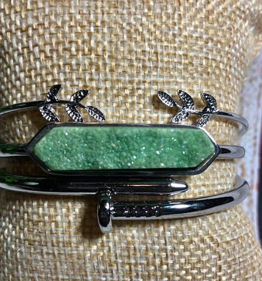 Bohemian Aromatherapy Natural Gemstone Stack Gray Agate And Gold Steel Bangles