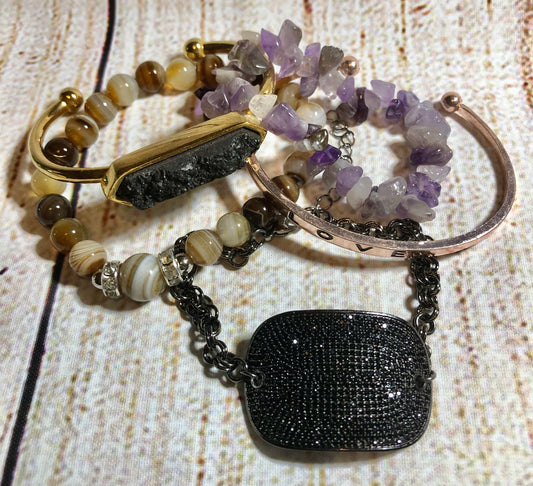 Bohemian Aromatherapy Natural Gemstone Stack Purple Agate