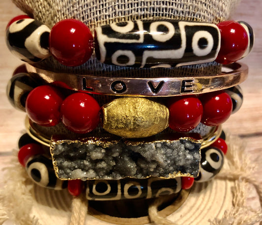 Bohemian Aromatherapy Natural Gemstone Stack Black/Gray Agate
