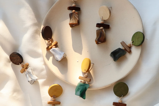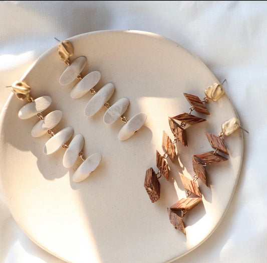 Vintage Blue Wooden Bohemian Dangling Earring Cream