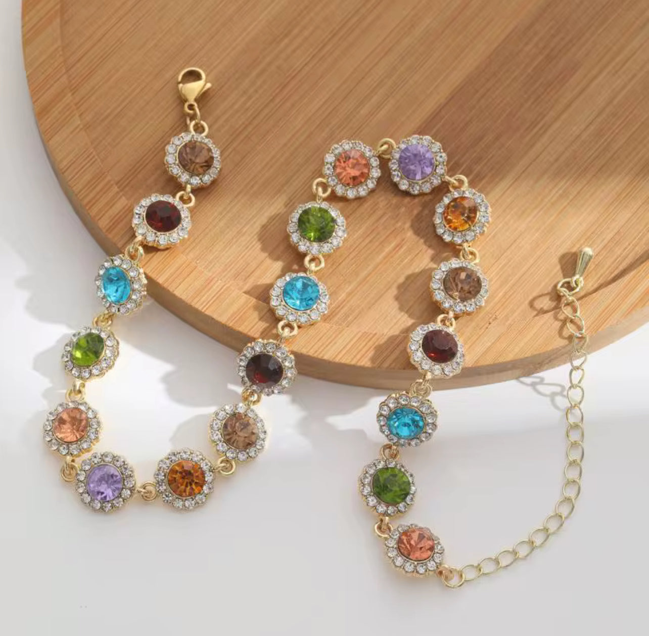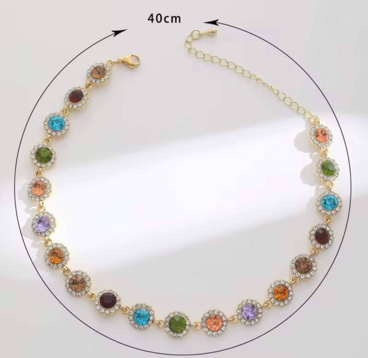 The newest addition to our GRITS collection. This custom colorful rhinestone necklace is both exquisite and gorgeous, making it the perfect accessory for any occasion. Elevate your style with the unique and eye-catching design of Grits jewelry.Custom colorful rhinestone necklace another addition to the GRITS collection.