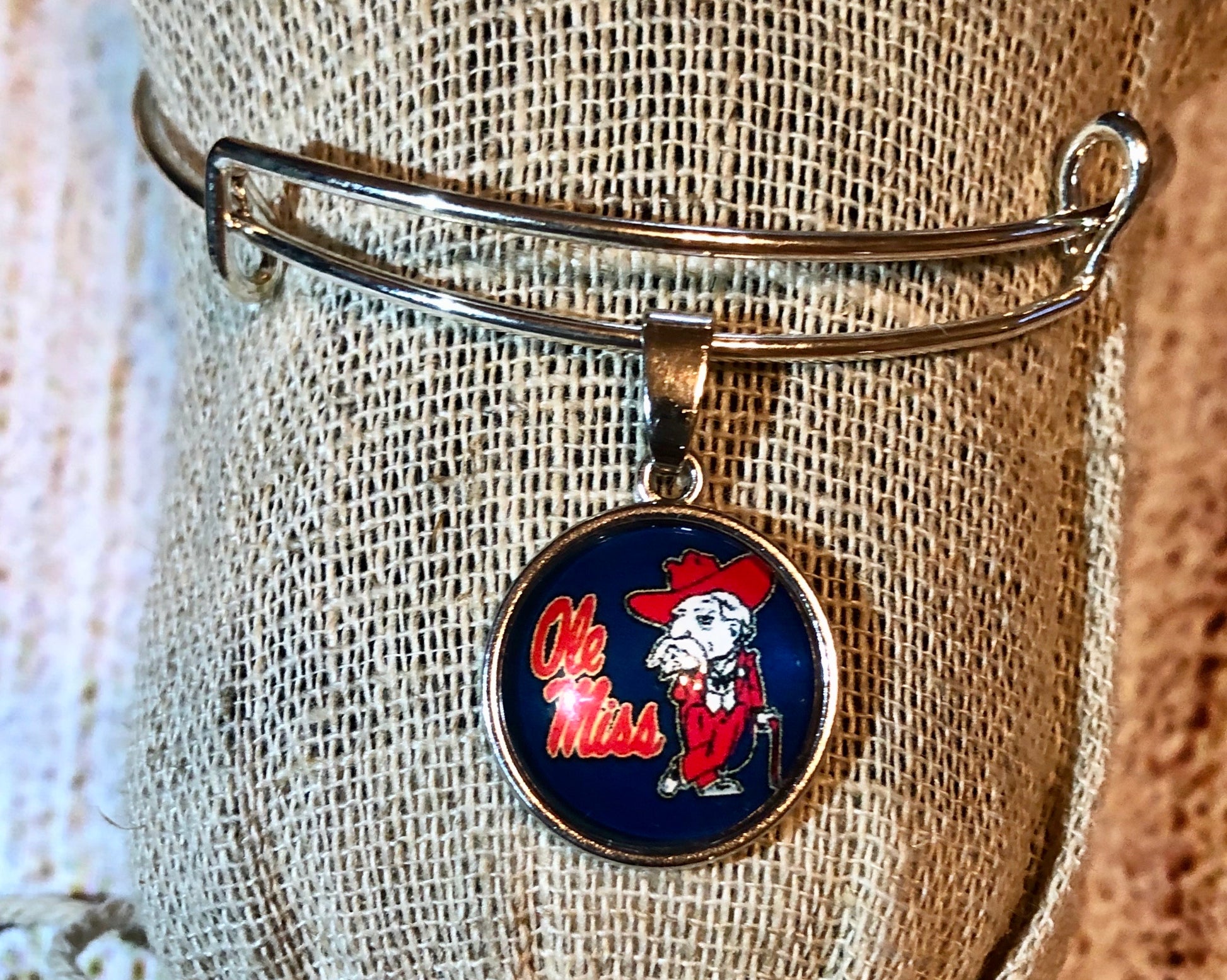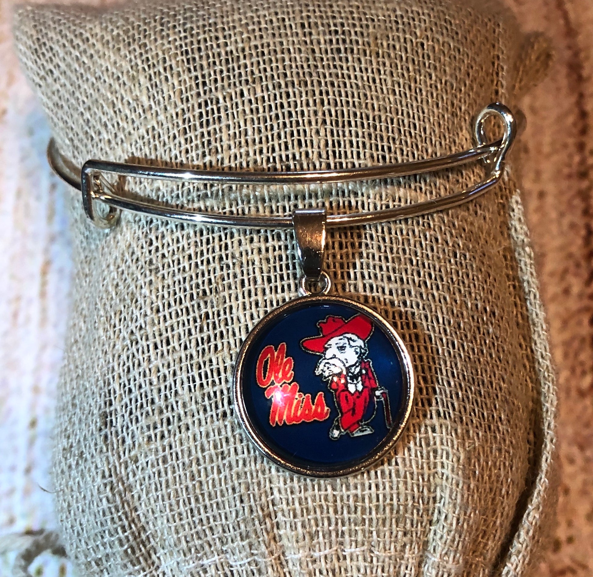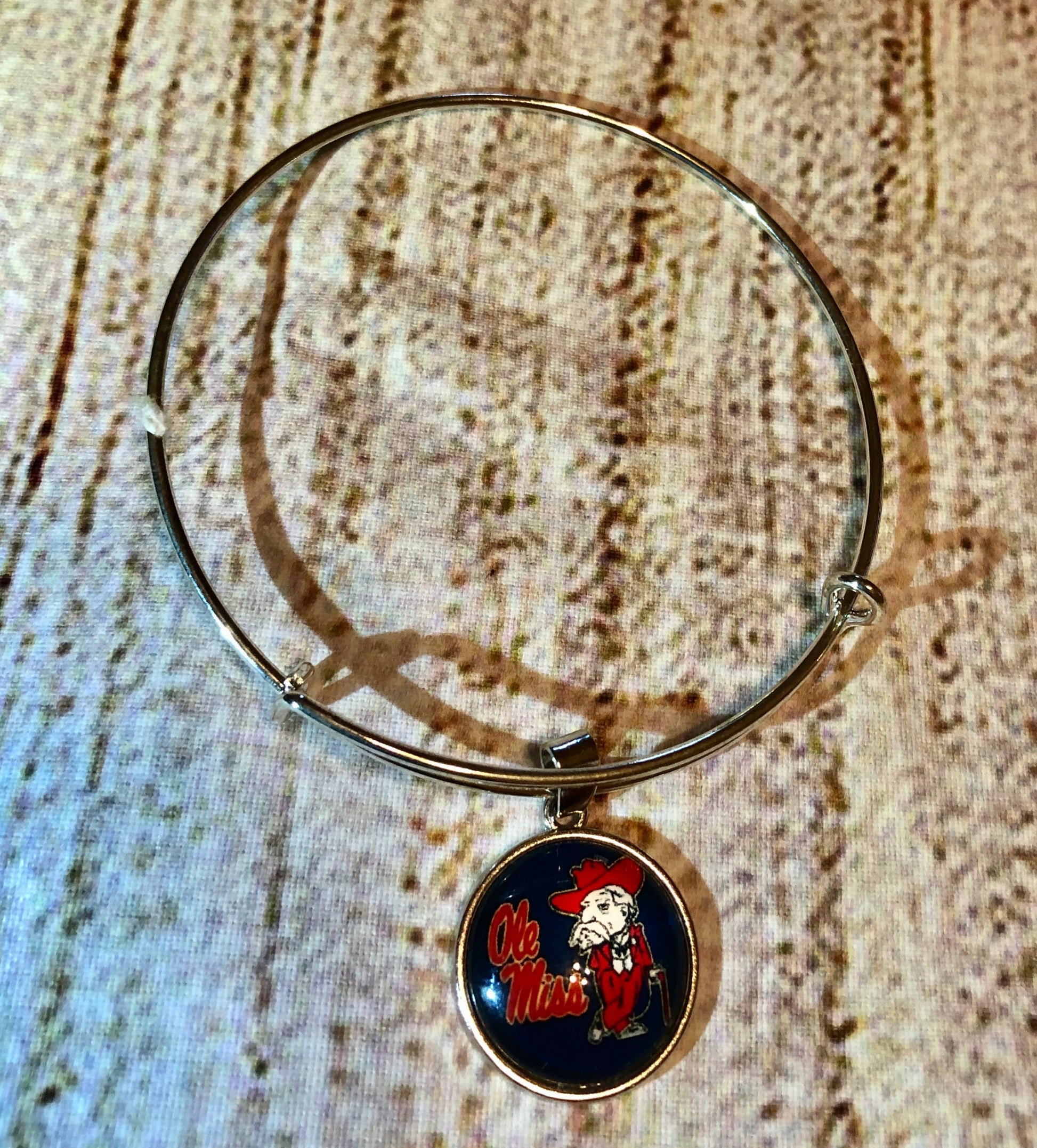Old Miss Charmed Bangle Bracelets Adjustable Wire Bracelets Silver with Football Charm
