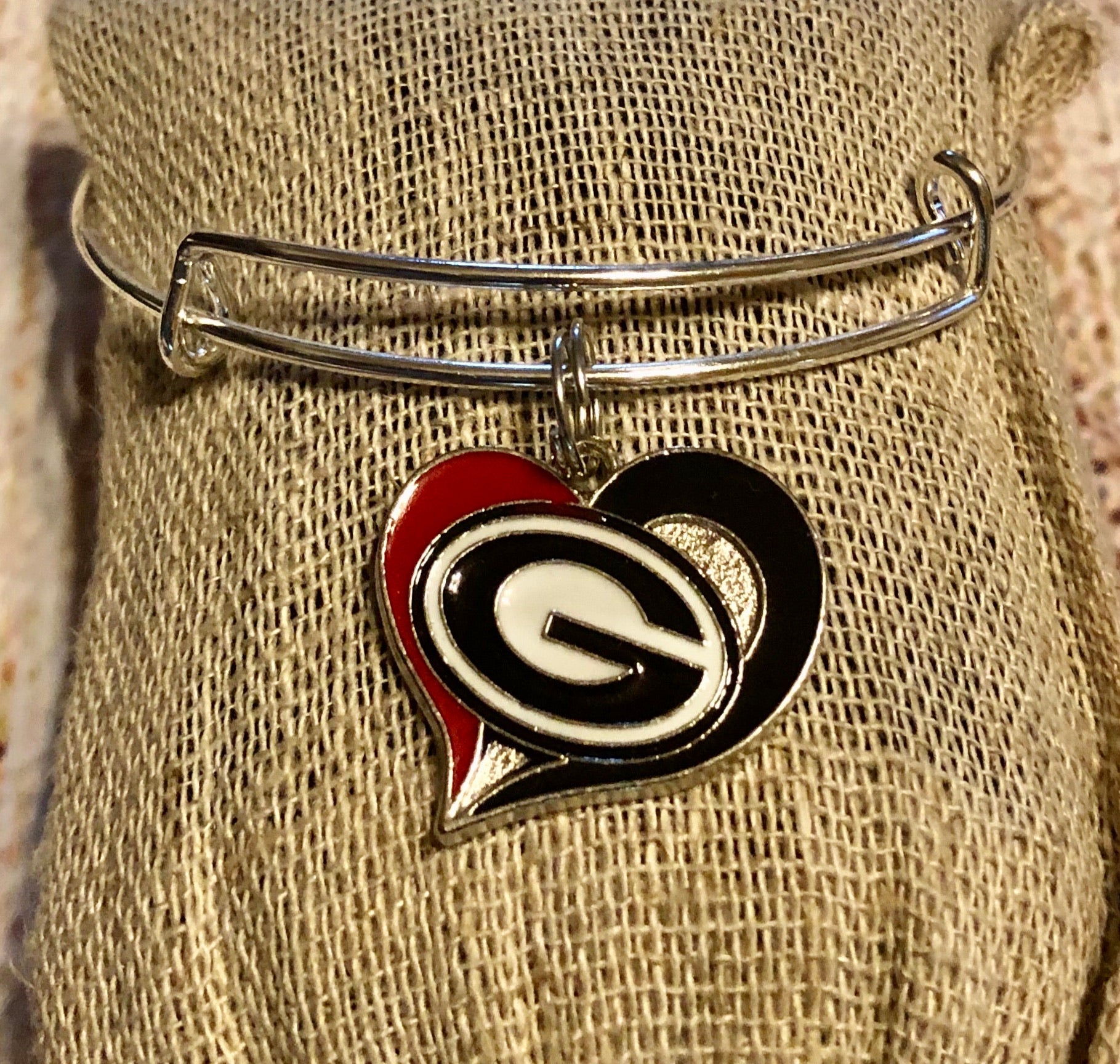 Georgia Charmed Bangle Bracelets Adjustable Wire Bracelets Silver with Football Charm