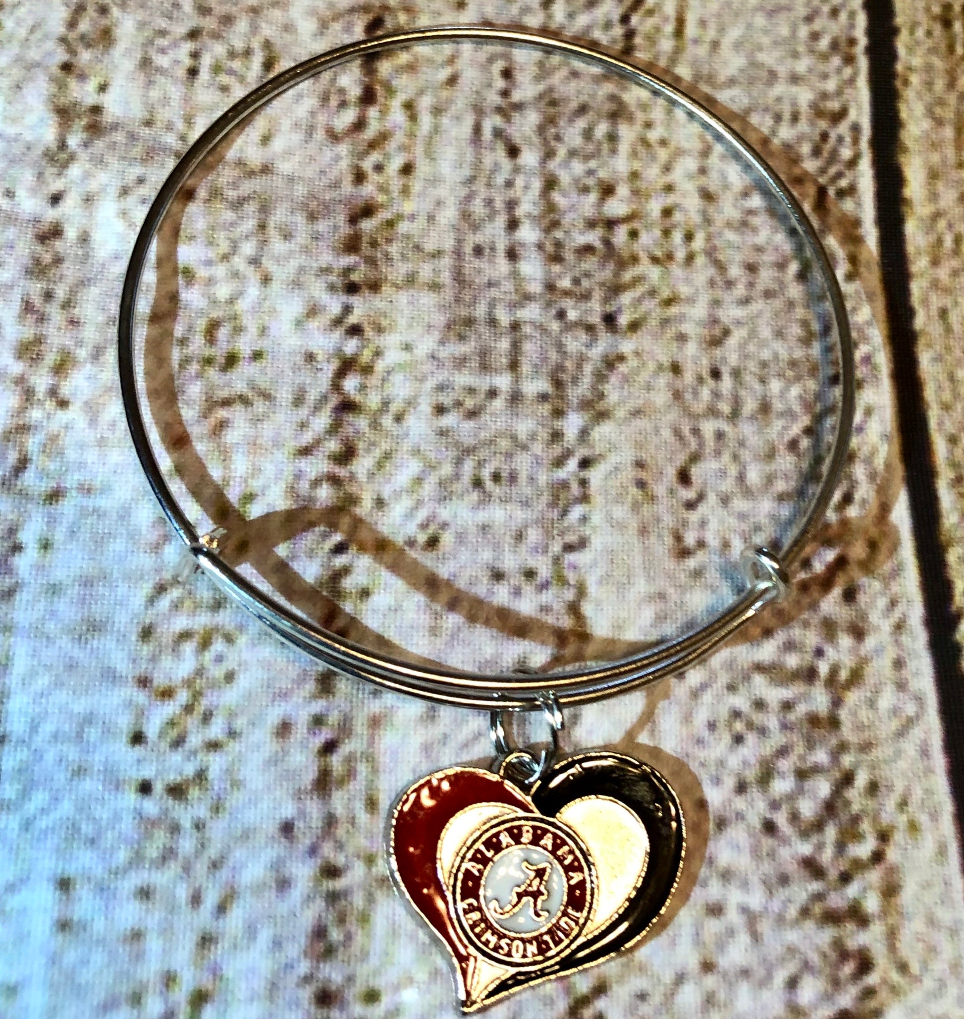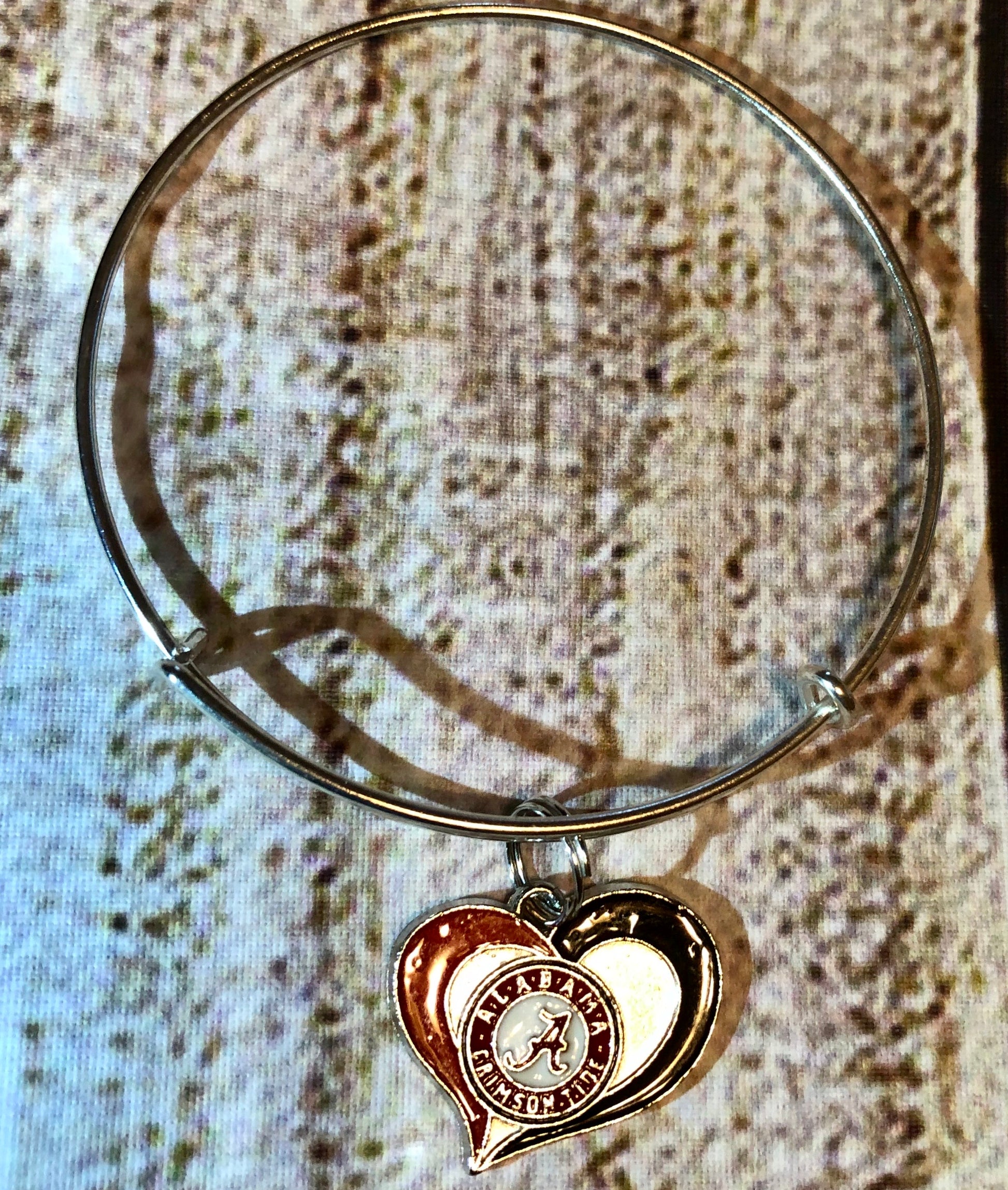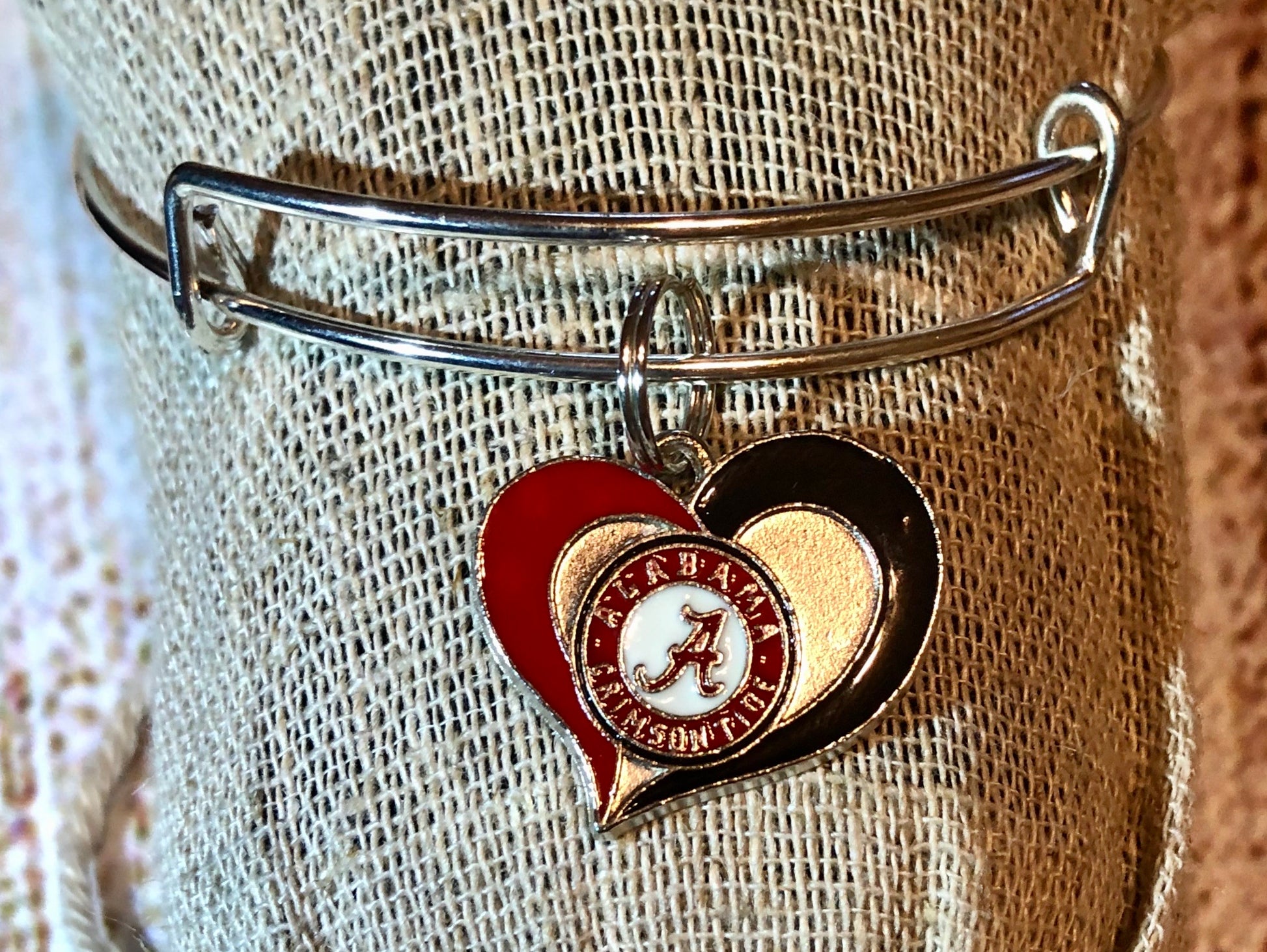 Alabama Charmed Bangle Bracelets Adjustable Wire Bracelets Silver with Football Charm
