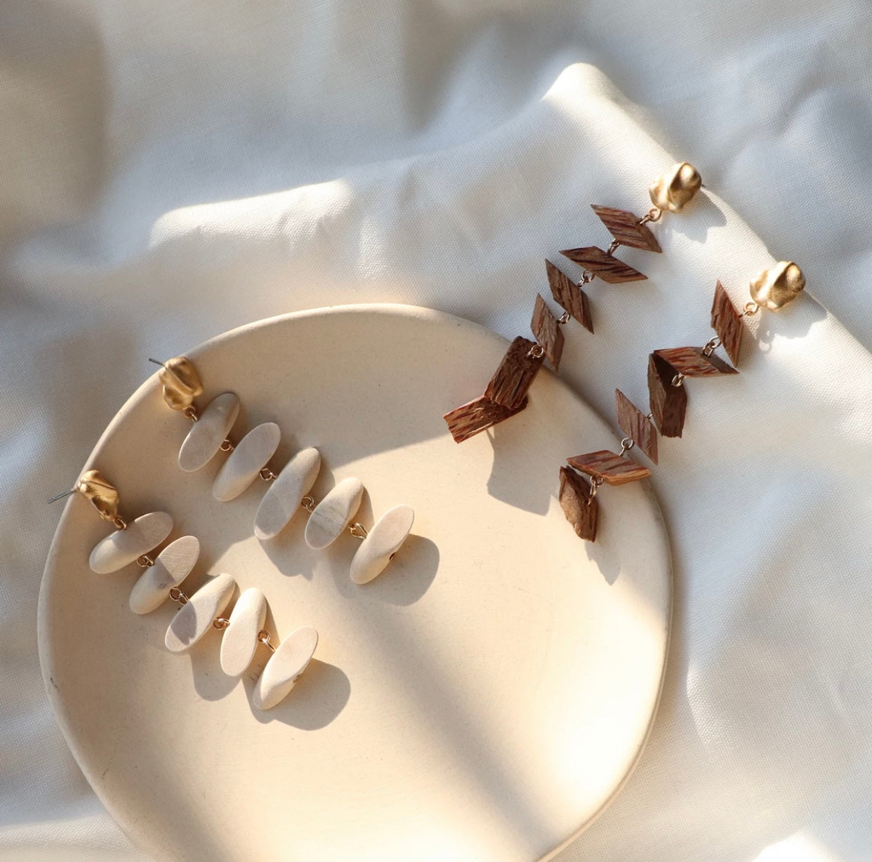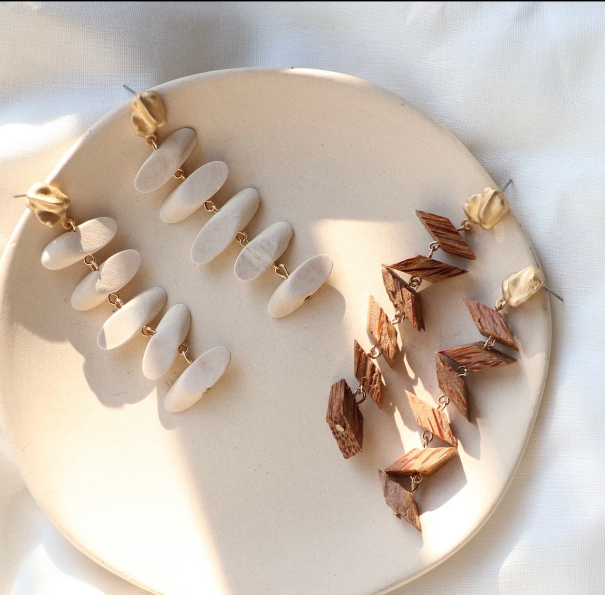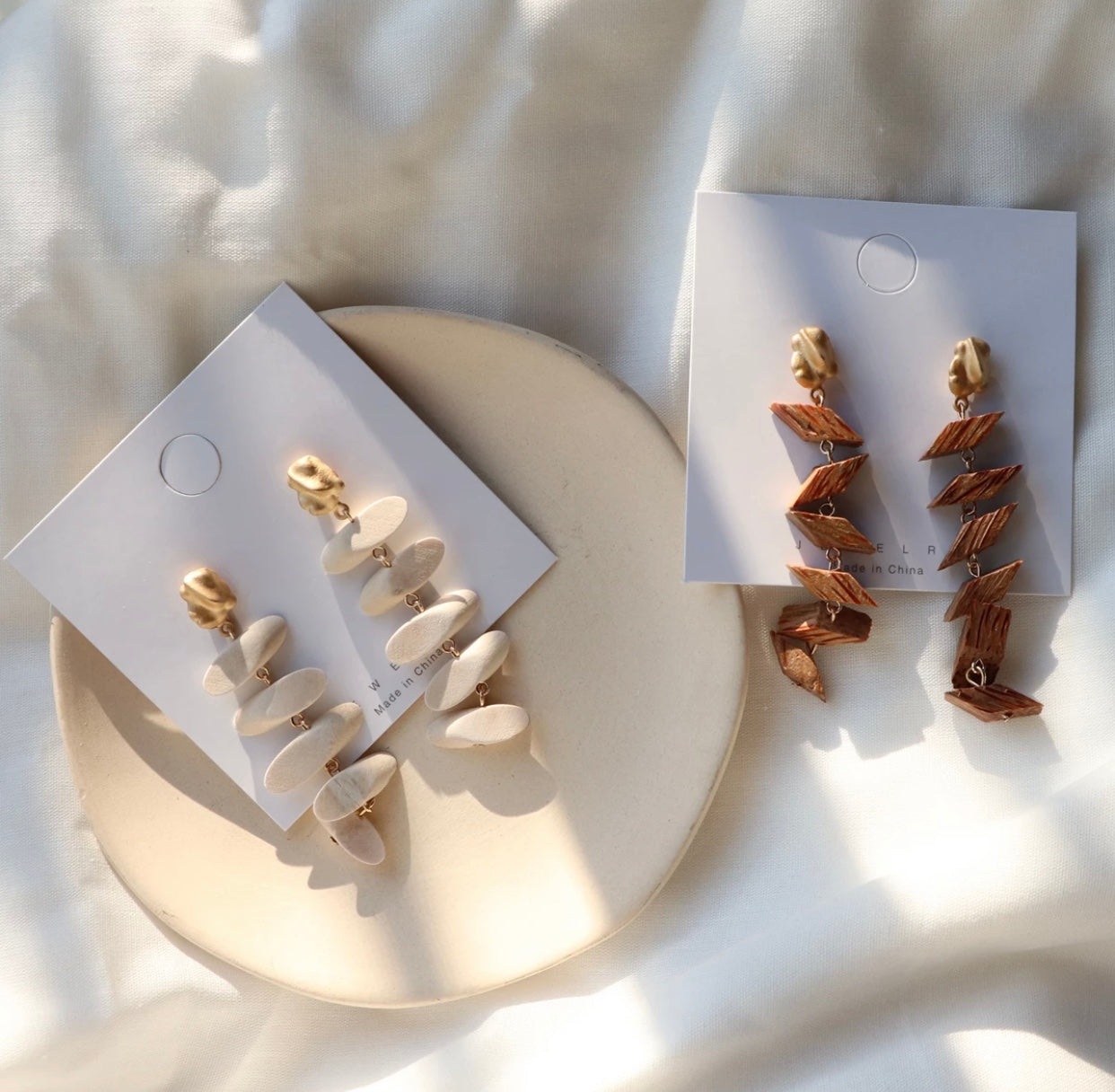 Bohemian Wooden Long Handmade Earrings White