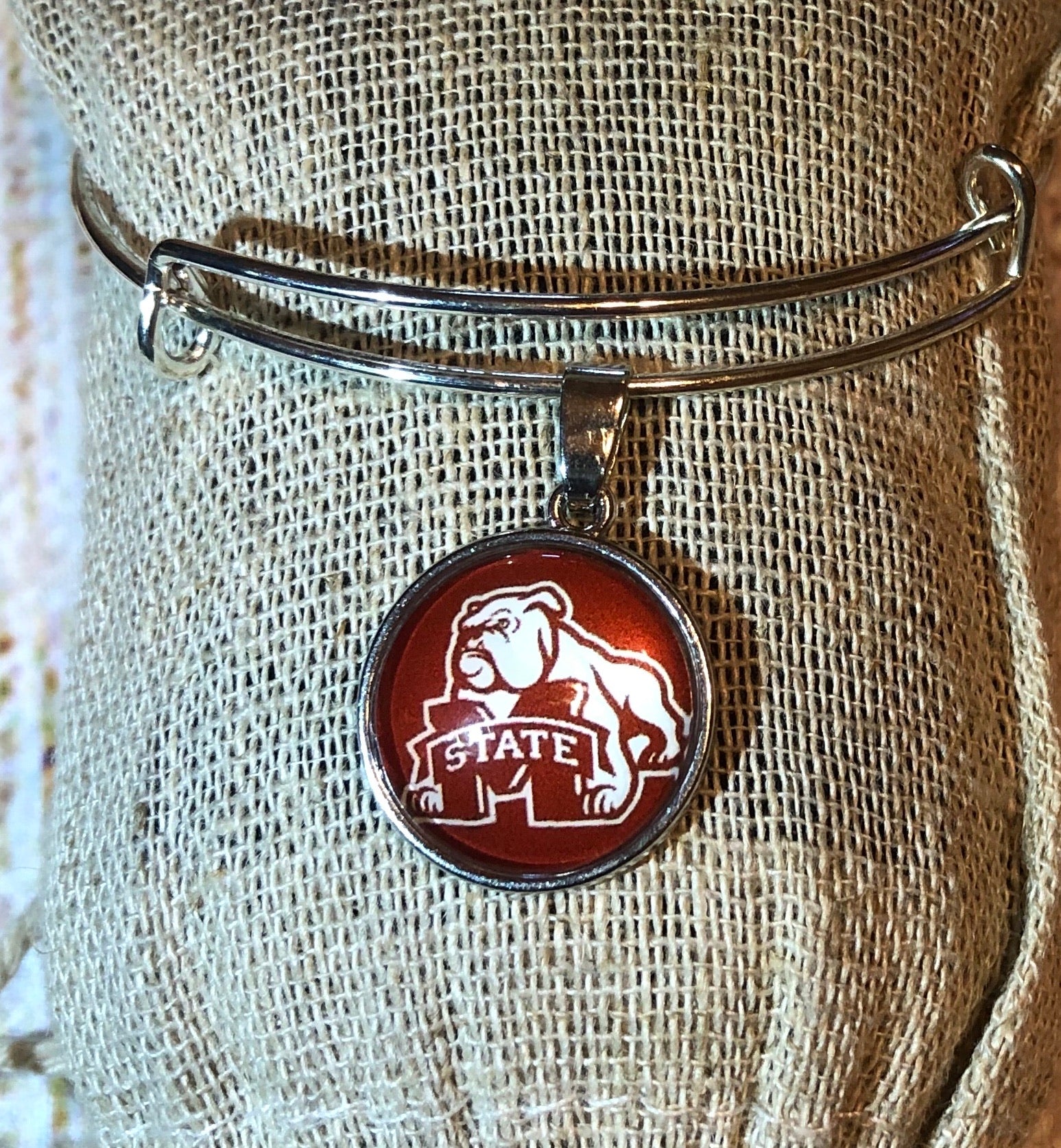 Mississippi Bulldogs Charmed Bangle Bracelets Adjustable Wire Bracelets Silver with Football Charm