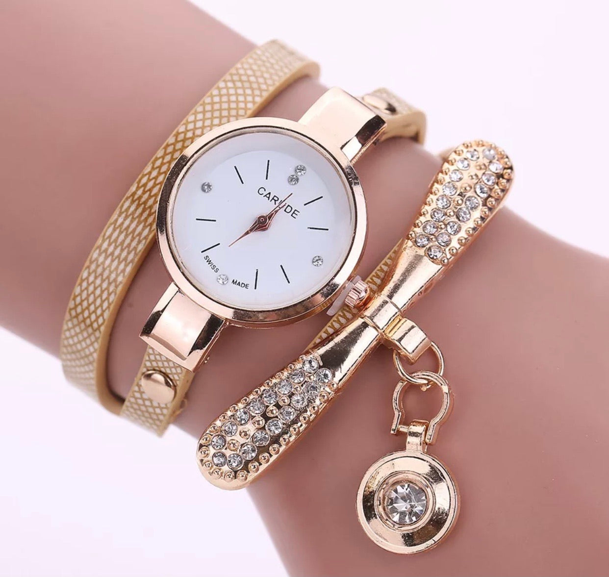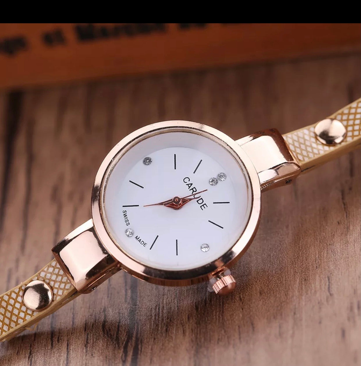 Crystal Round Dial Luxury Wrist Watch Dress Gold Ladies Casual Bracelet