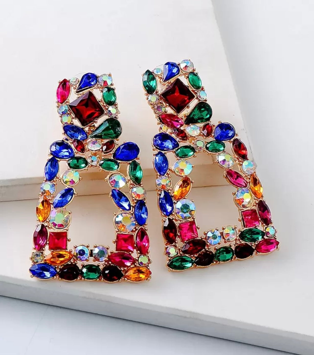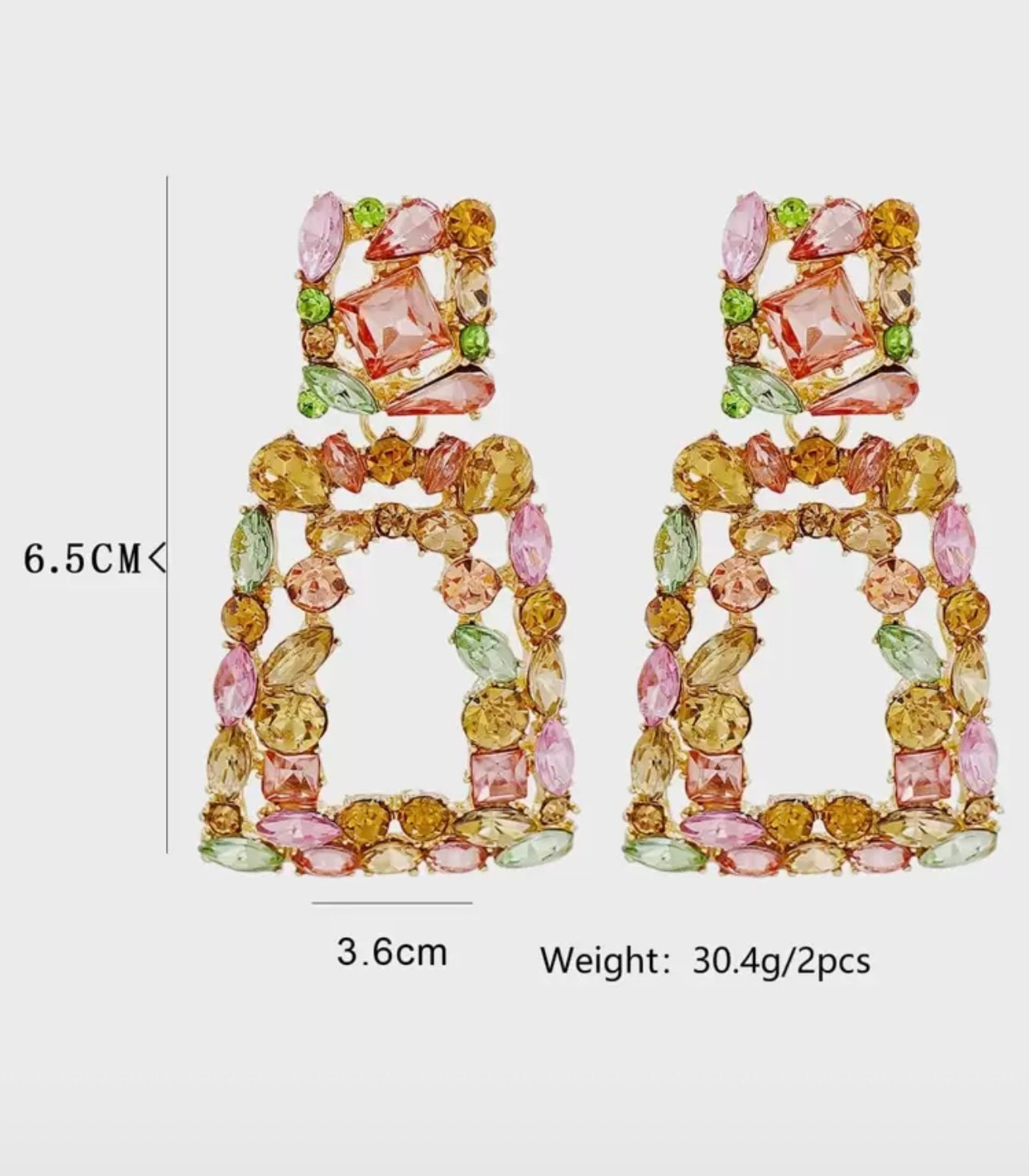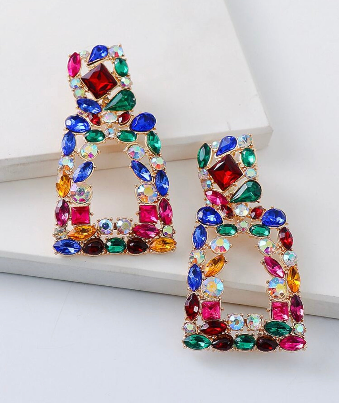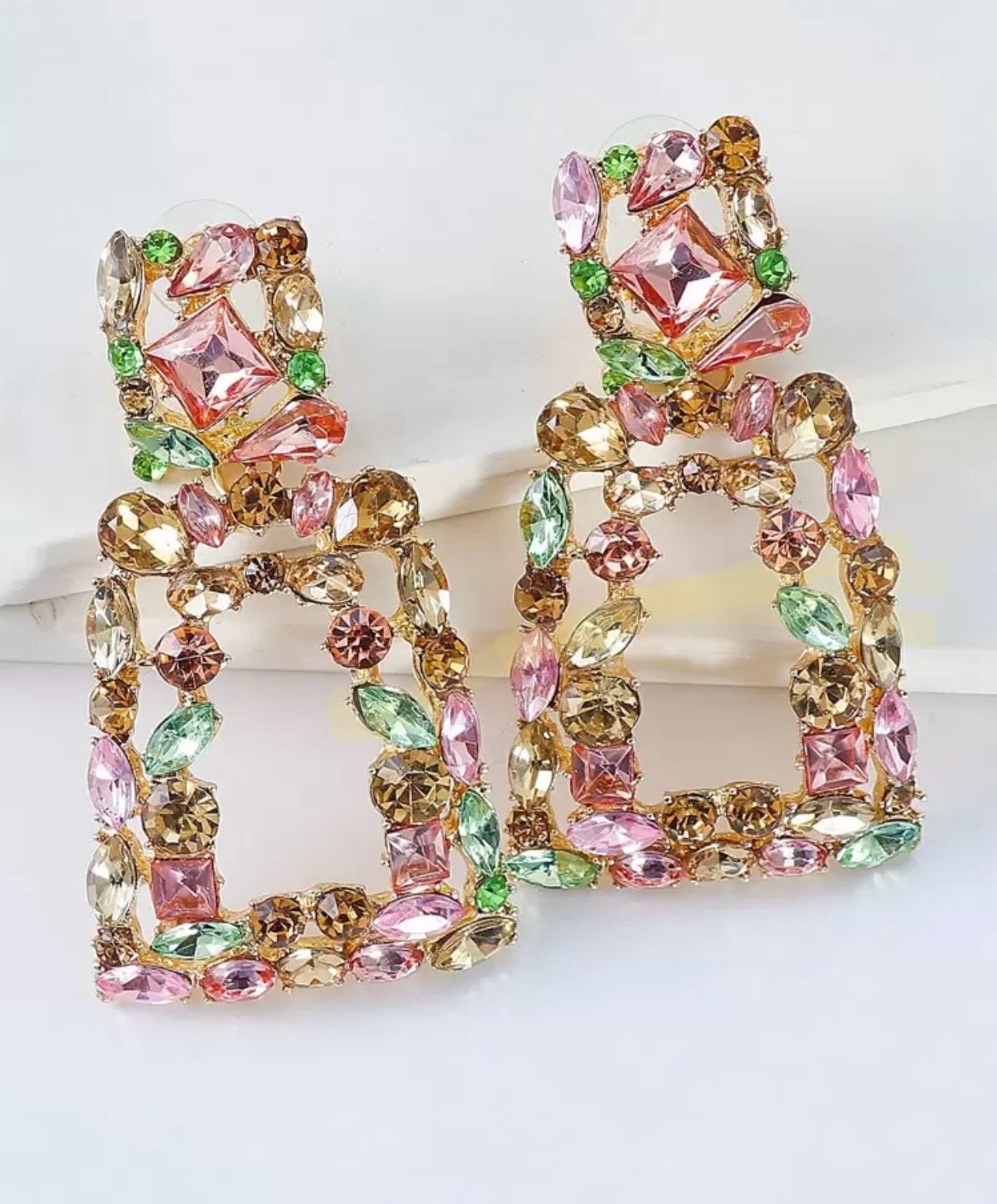 Add a touch of youthful, vibrant class to your grits collection with these stylish Rhinestone Geo Design Earrings from juran. Expertly crafted with premium rhinestones for a chic and sophisticated look. Upgrade your accessories game with these statement pieces.