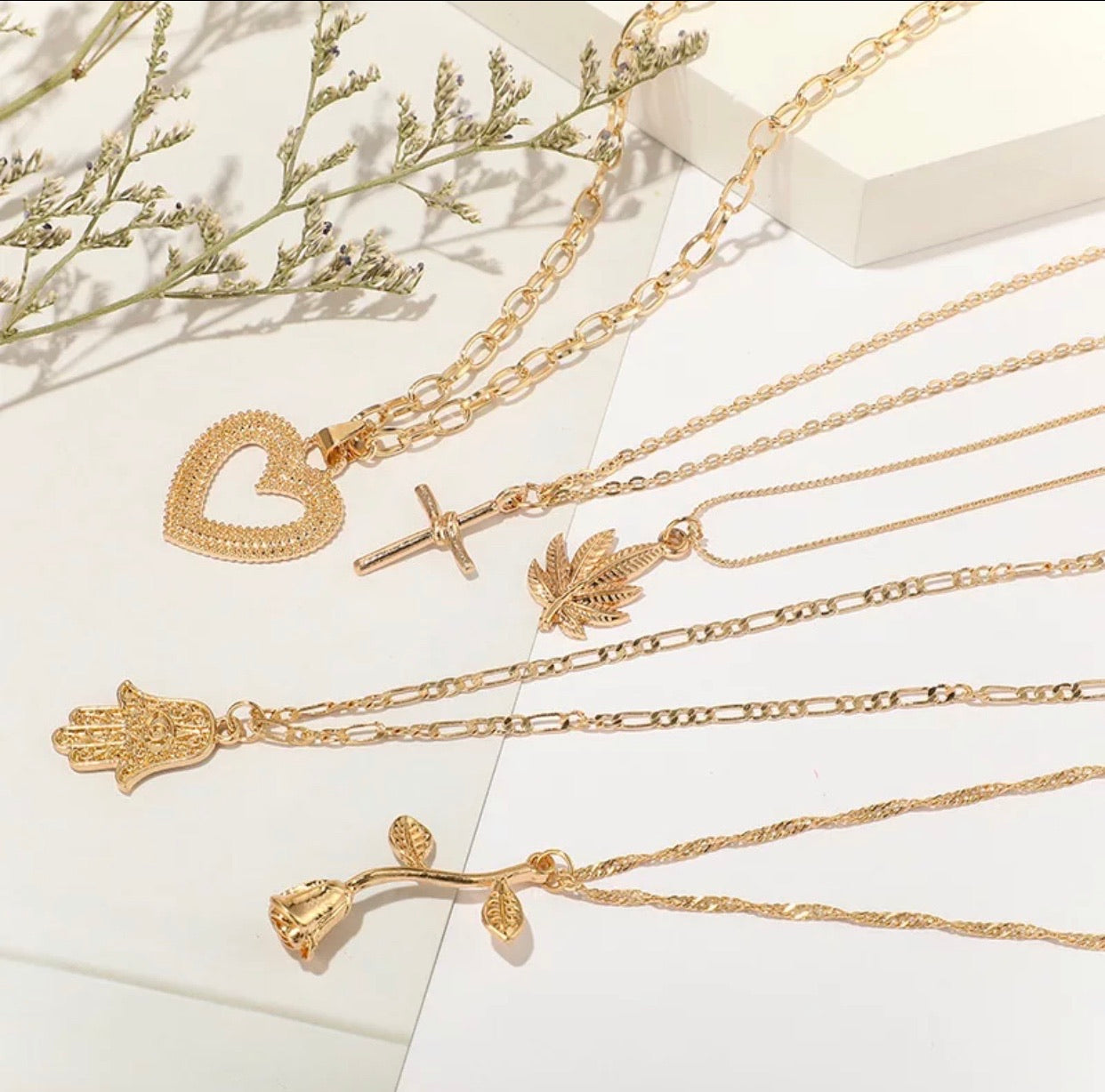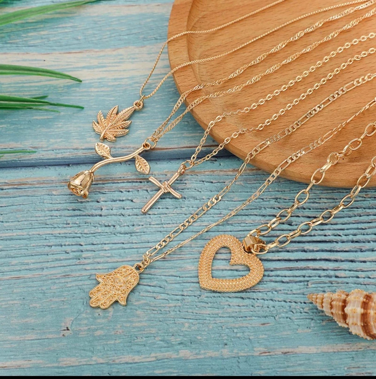 Fashion layered cross heart flower Necklace